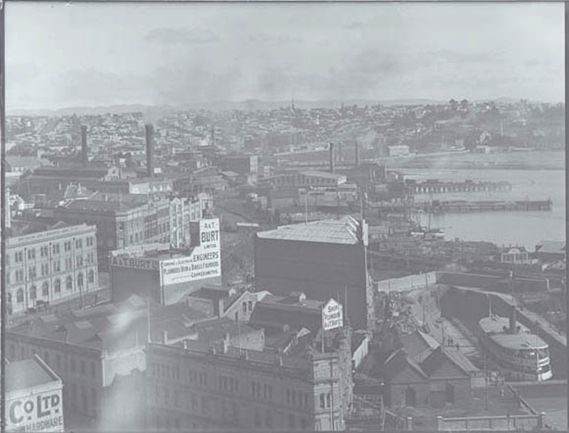 Henry Winklemann’s original glass plate used to photograph his panorama of Auckland City from the top of the Ferry Building, 19 July 1912.