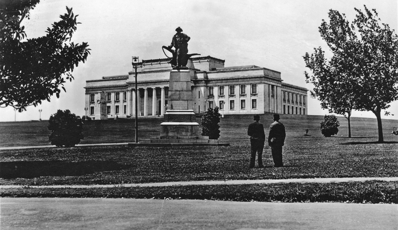 Burn’s Memorial in The Auckland Domain with Auckland War Memorial Museum (completed 1929)