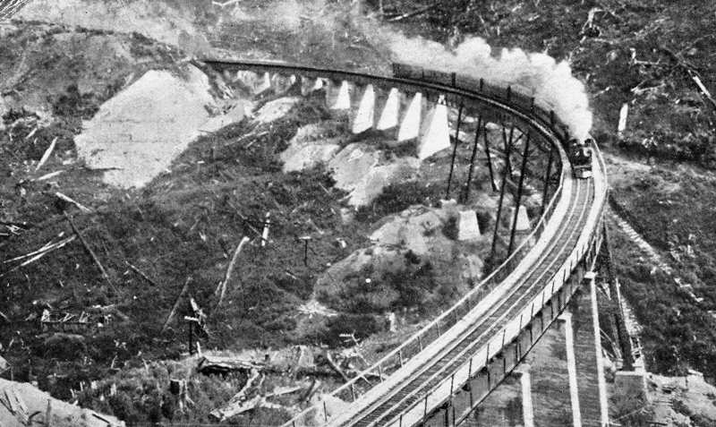 Hapuawhenua Viaduct (built in 1907-1908). The Viaduct is 284 metres long and at its maximum it stands 45 metres high