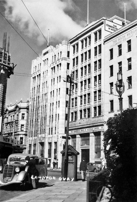 Lambton Quay with MLC building (completed 1940) under construction (far left)