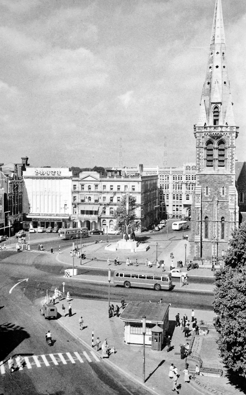 View of the north end of Cathedral Square including Cathedral Tower and the Press Buidling